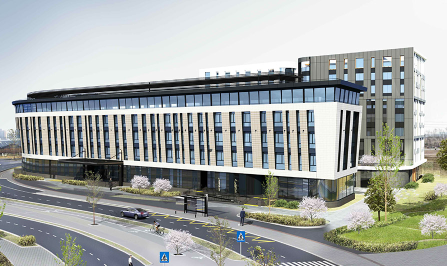 Реконструкция «Апарт-отеля» под Гостиницу, снос старого двухэтажного здания, строительство двух 9-этажныхи зданий Апартаментов, офисов, кафе на 80 посадочных мест, а также подземным этажом и переходом между зданий